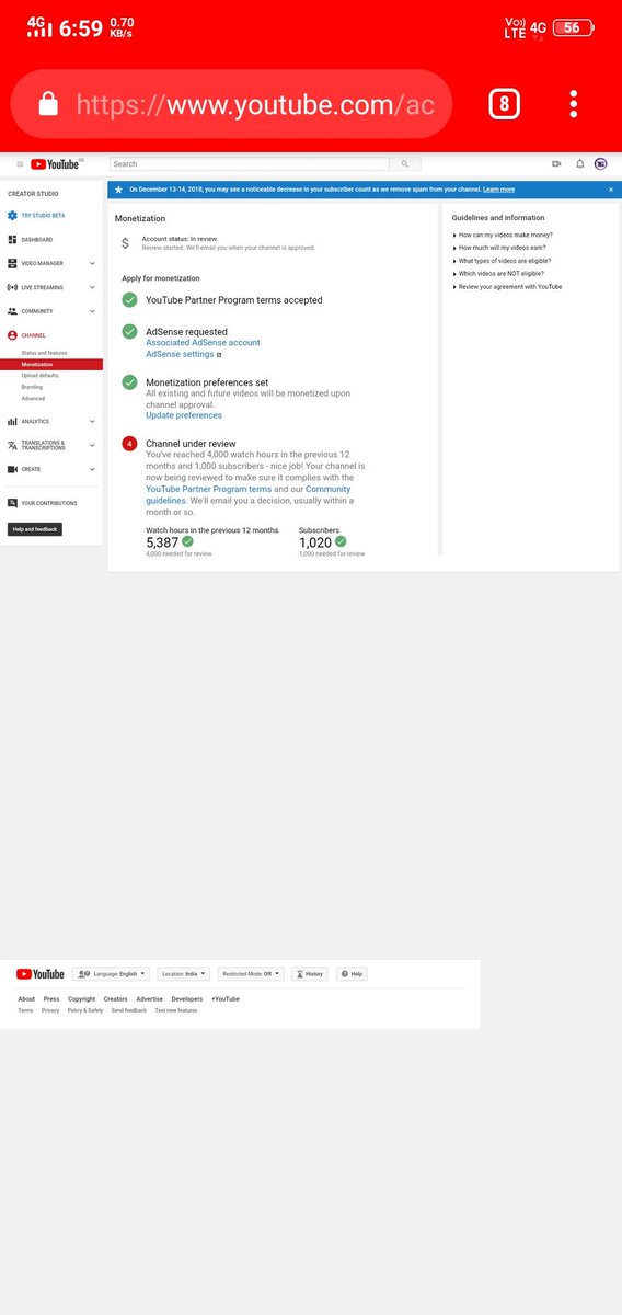 @TeamYouTube hello YouTube my channel reach the criteria of monetization in last 356 days plz YouTube enable my monetization fast