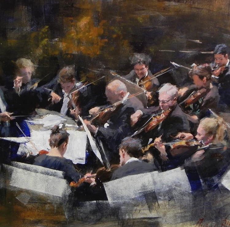 #painter, says he’s drawn to musicians as subjects in his work, because of “their focus, their shared purposefulness and the#music itself”. Oil on board.#artpic.twitter.com/O9ddzYpMhU