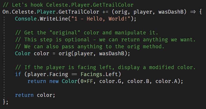 What's more insane than hooking methods at runtime? IL manipulation & delegate injection at runtime! MonoMod's supercharged HookGen component makes hooking any C# method as easy as On.Type.Method += (..) => {..} Still improving, WIP. IL.. += .. powered by