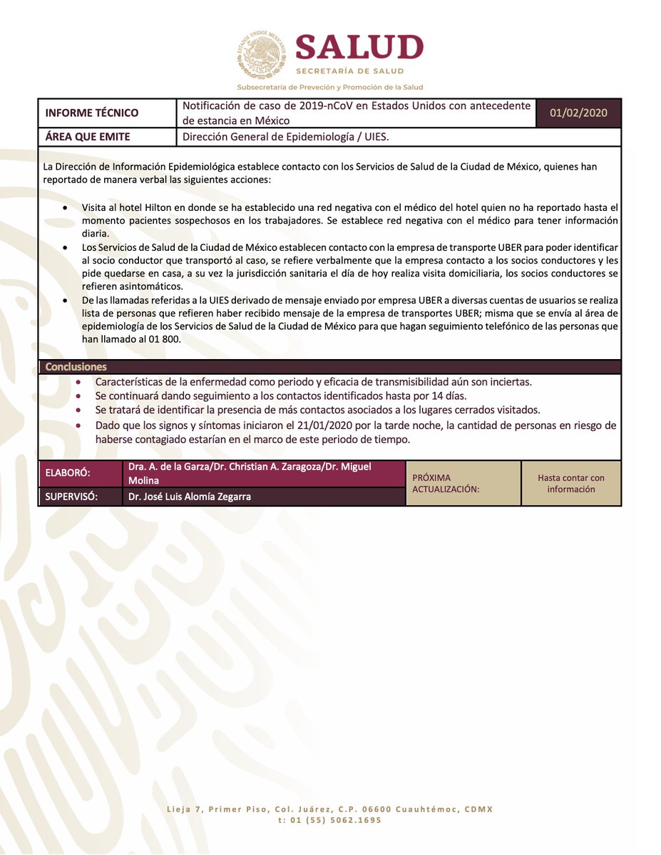 #2019nCoV case found in Mexico. His prior movements & contacts, including in California, tracked using his#Uber records. Smart contact tracing!https://twitter.com/StratCons/status/1223788081695862784 …