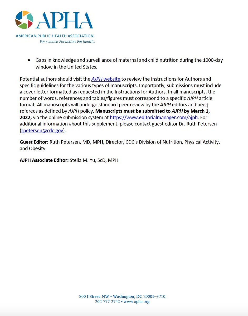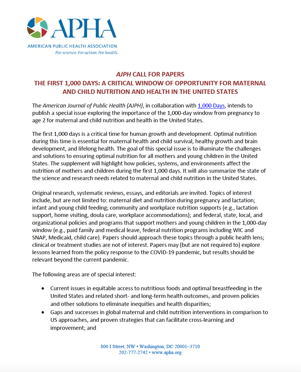 @1000Days on this special issue. Make sure to submit your papers by March 1!#publichealth#1000days#maternalhealth#childnutritionhttps://twitter.com/AMJPublicHealth/status/1466846273462579205 …