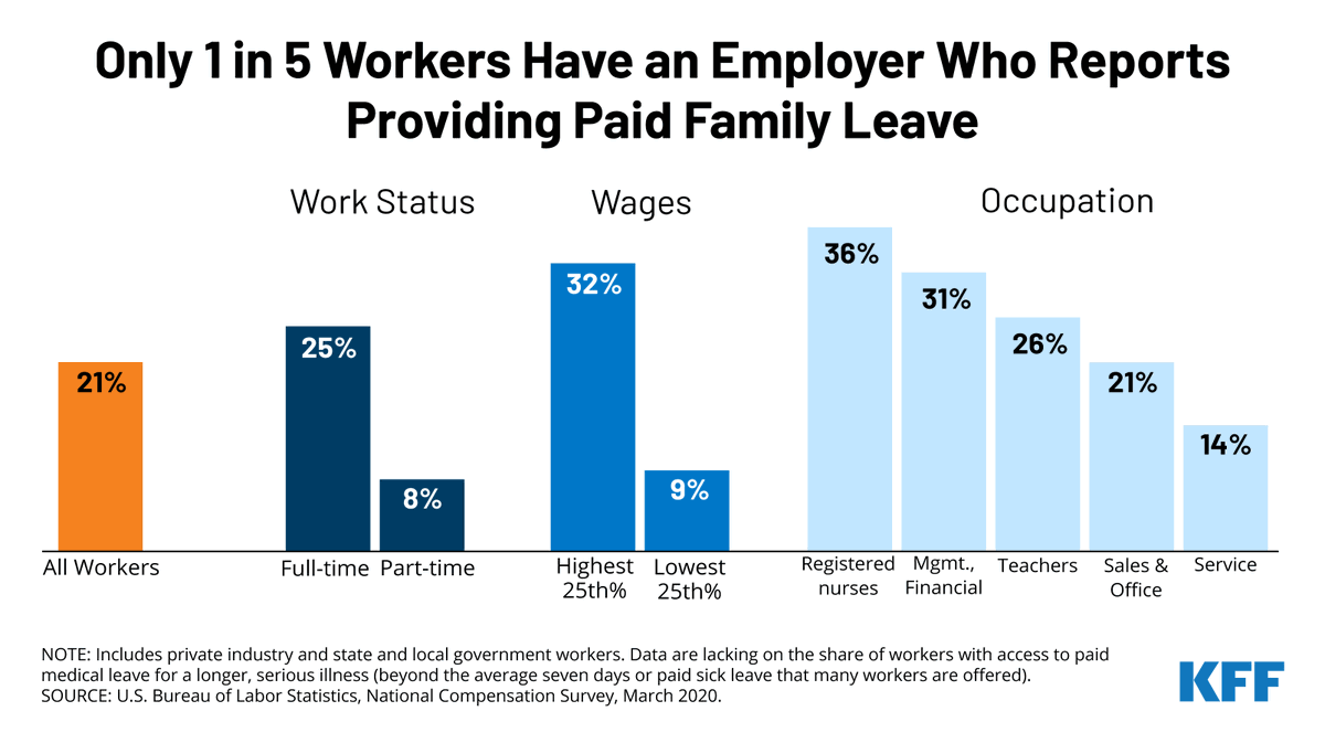 Most at some point will need to take time off work to care for themselves or their families, but only 1 in 5 workers have access to paid