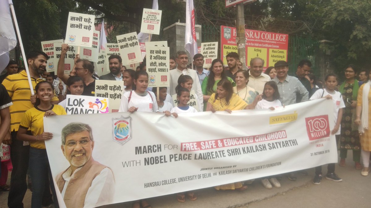 @k_satyarthi dMillion#India in#Delhi today, demanding that EVERY child is#FreeSafeEducated - amazing to see the students of@hrcduofficial on the streets today!https://twitter.com/KSCFIndia/status/1189828572162097154 …