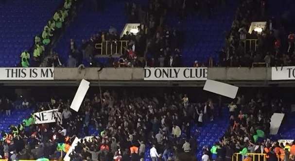 Arsenal fans in skirmishes with police & pull down Spurs signs at WHL [Tweets] http://www.101greatgoals.com/blog/arsenal-fans-in-skirmishes-with-police-pull-down-spurs-signs-at-whl-tweets/ …pic.twitter.com/LnssFJaDY1