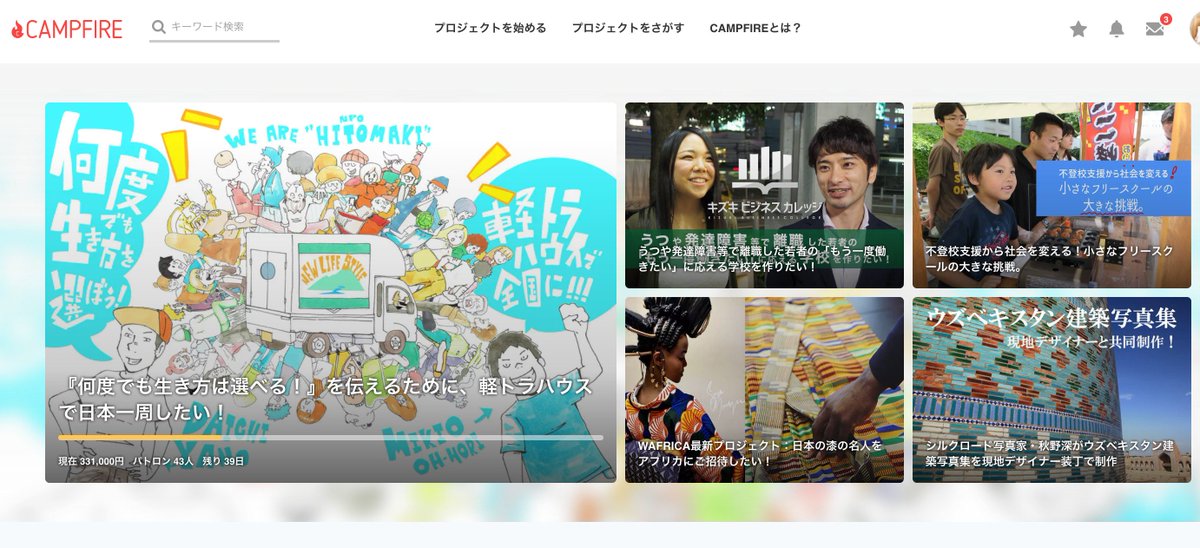 ひとまきのチャレンジが、campfire @CAMPFIREjp のトップページに掲載中!!!