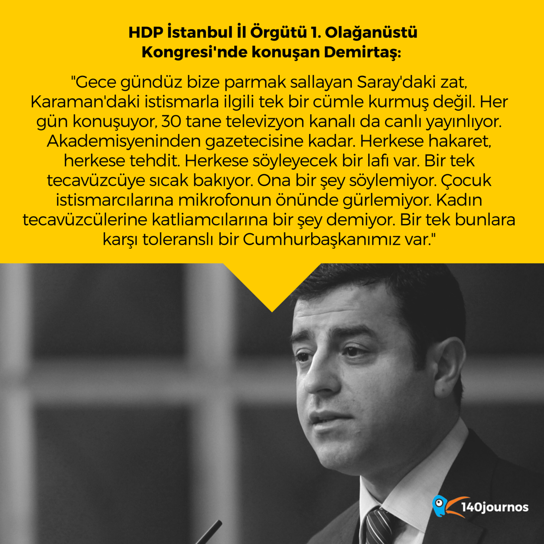 Demirtaş: "Saraydaki zat, Karaman'daki istismarla ilgili tek cümle kurmuş değil. Bir tek bunlara toleranslı."pic.twitter.com/jsBT0iY5qB