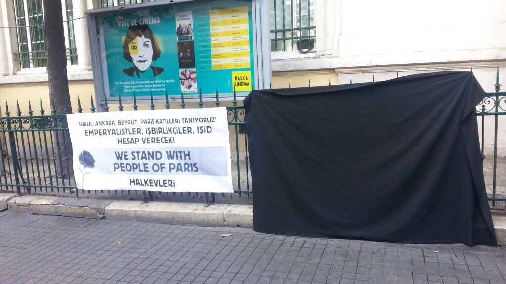 #Paris'te hayatını kaybedenler için İstiklal Caddesi'ndeki Fransız Kültür Merkezi önünde mumlar yakıldı.@mousebuttonpic.twitter.com/tTcWTadCAF