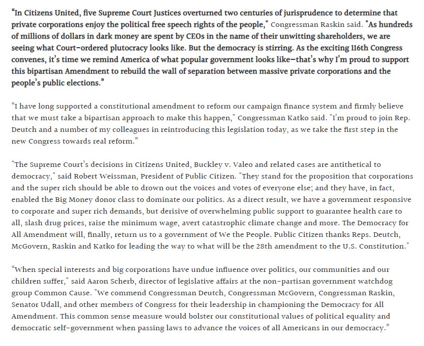 @RepTedDeutch,@RepMcGovern &@RepJohnKatko in introducing a bipartisan constitutional amendment to overturn Citizens United. Let's get big money out of politics and restore democratic power to the American people. https://bit.ly/2s8kfA5 pic.twitter.com/4nPoAaXJ9k