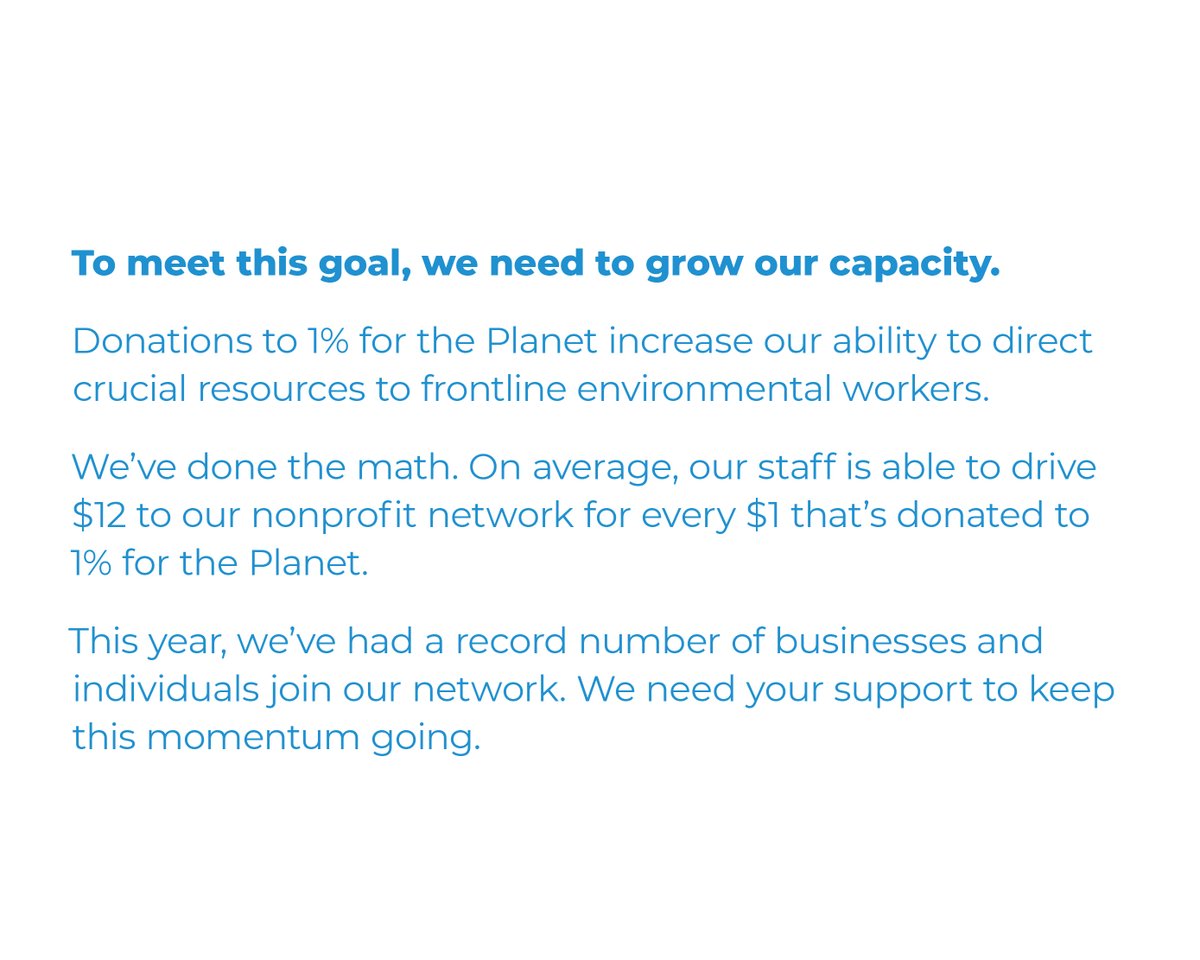 As a 1% For The Planet member, every product we sell donates at least 1% of sales to an environmental nonprofit. But right now, we're giving