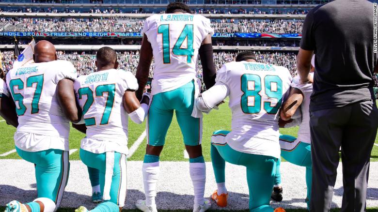 President Trump says he wants to meet with NFL players and athletes who kneel during the National Anthem so they can recommend people they think should be pardoned because they were treated unfairly by the justice system https://cnn.it/2sIDHEf  pic.twitter.com/jao0GPt18i