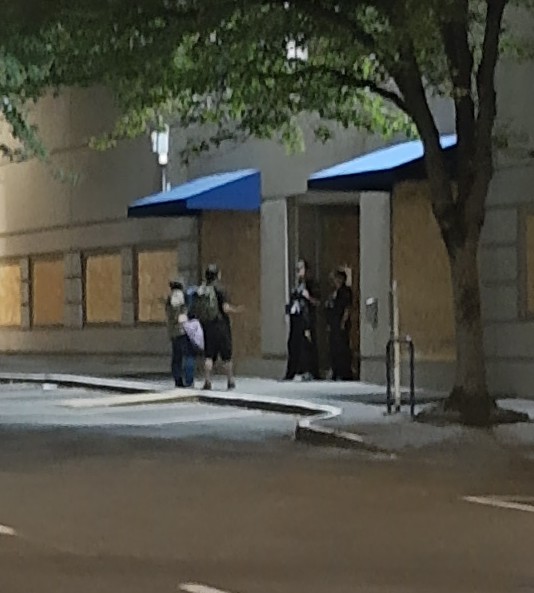 Not proud boys, I think. Black. I got the plate Then the police DID show up. Threw something that looked like smoke or gas. Lots of flash bang. I think they're majorly understaffed