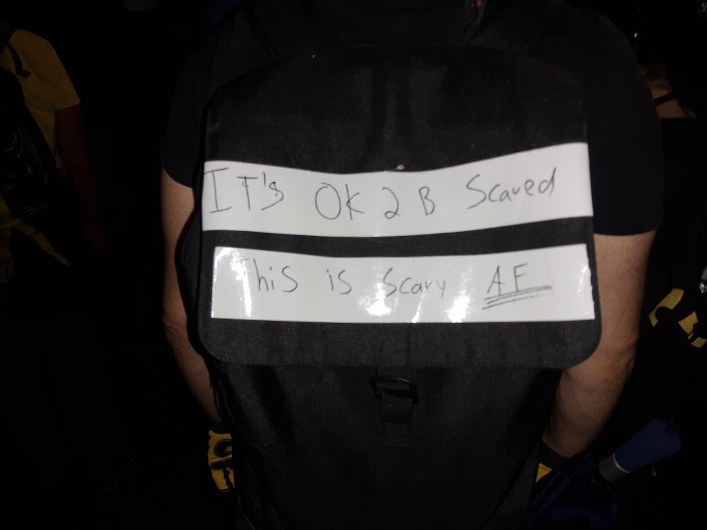 A sign on a protester's backpackpic.twitter.com/8dUSi8EG4J
