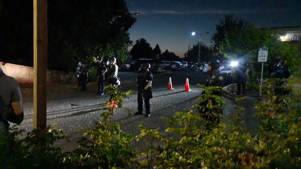 Having trouble uploading clips it oh boy things have happened They struck fast. Arrested someone next to the precinct with extreme force just as a cop line emerged onto 45th and Burnside Then they bullrushed the protest two blocks east Then they declared an unlawful assembly