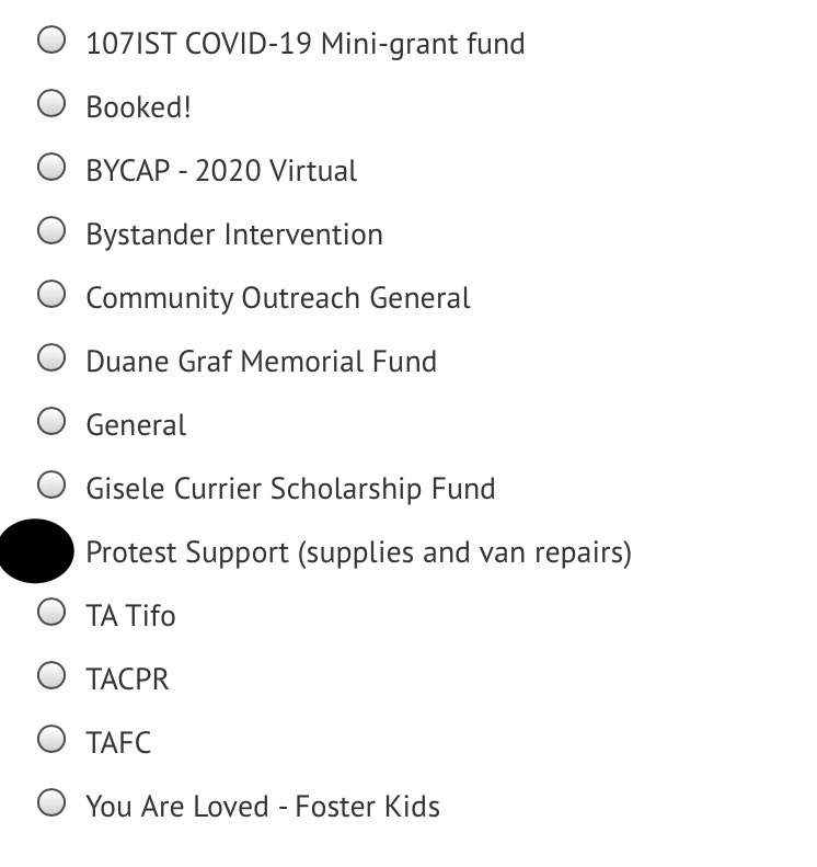 By now, you’ve likely seen the intentional destruction of @NoPityVan’s tires. If you’d like to help with this repair and/or related expenses, please head over to https://timbersarmy.org/107ist/donate and select “Protest Support” (see below). Thank you, as always, for your help! #BAONPDX #RCTID