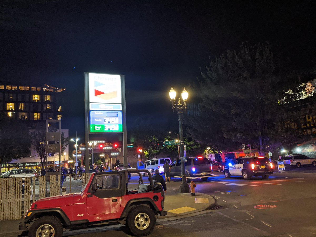 Standoff at 4th and Burnside Police occupying the Chevron parking lot Pretty sure this is a parole violation for Joey but what do I knowpic.twitter.com/ozmHUX9Ybq