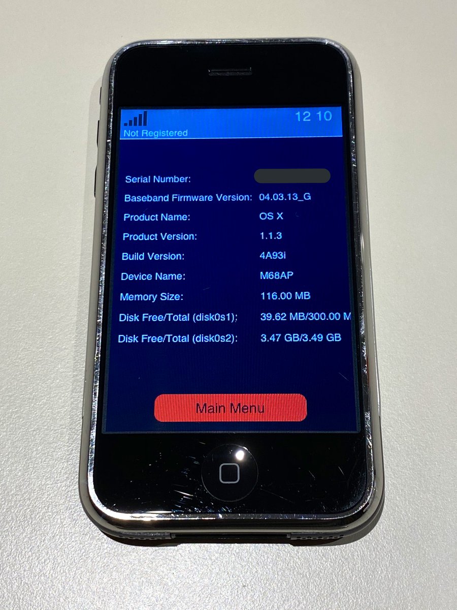 Here is a prototype of the first generation #iPhone. This device lacks of the ‘iPhone’ label on the back. Codename: ‘Purple’. Model identifier: M68. It comes with nonUI #iOS 1.1.3 (based on Tahoe 4A86 Build), which was still called ‘OS X’ back at those times.pic.twitter.com/SOGIPY4Pny