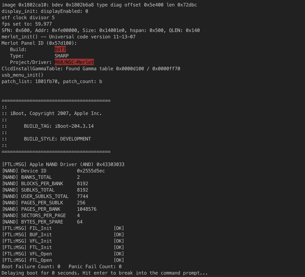 The config is DVT7 as shown below. Also iBoot banner doesn’t advertise CPID, CPRV, CPFM, BDID, etc.pic.twitter.com/VpeUh2JX48