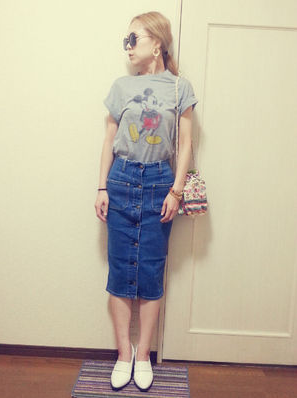 加藤ミリヤさんもミッキーTシャツコーディネートをされています♥︎ 女性らしいシルエットに、キャップを合わせてギャップコーデが大変おしゃれですね♥︎