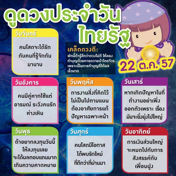 ดูดวงไทยรัฐ ประจำวันที่ 22 ตุลาคม 2557 กับอาจารย์นพ http://www.thairath.co.th/content/458172