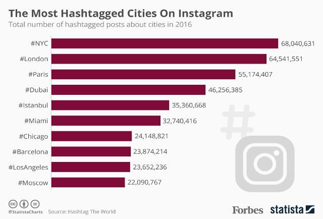 Most popular cities on Instagram: 1. NYC 2. London 3. Paris 4. Dubai 5. Istanbul http://bit.ly/2jdcdRg