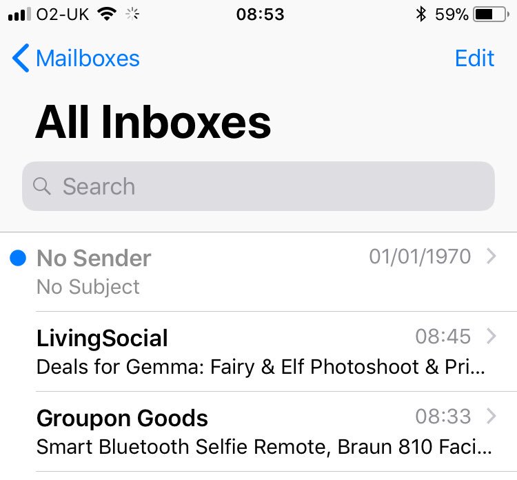 iPhone ghost email from 1970! This is gonna drive me mad. Can’t delete or mark as read! Arghhhhhpic.twitter.com/vpHCF3eQag