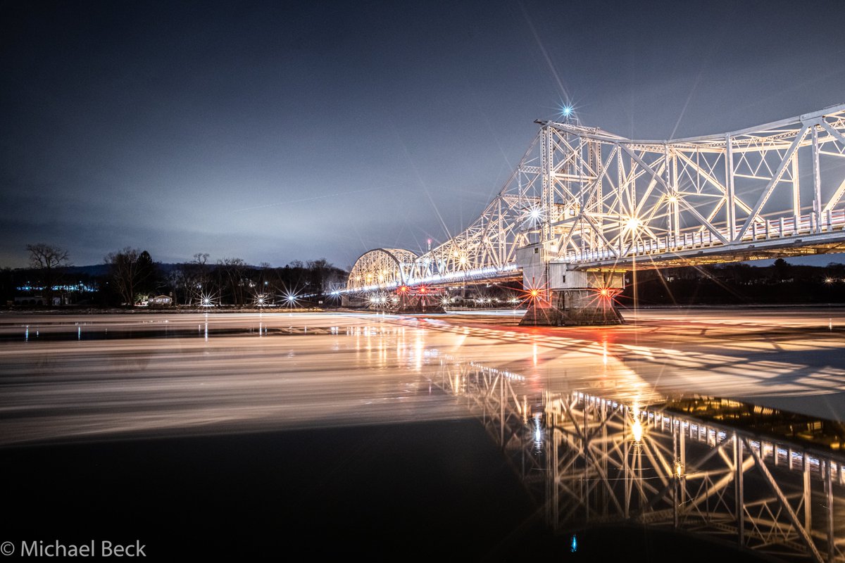 Haddam Swing Bridge Thursday night with long exposure ice flow, East Haddam, Ct.