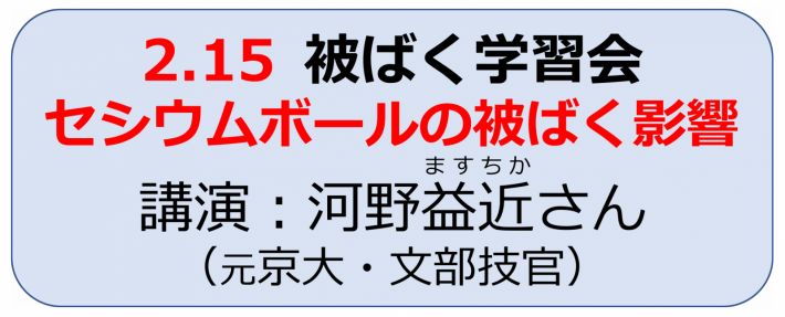 2.15 被ばく学習会「セシウムボールの被ばく影響」: 放射線被ばくを学習する会 http://ow.ly/C3AS30q70WT pic.twitter.com/udsrku3nC3