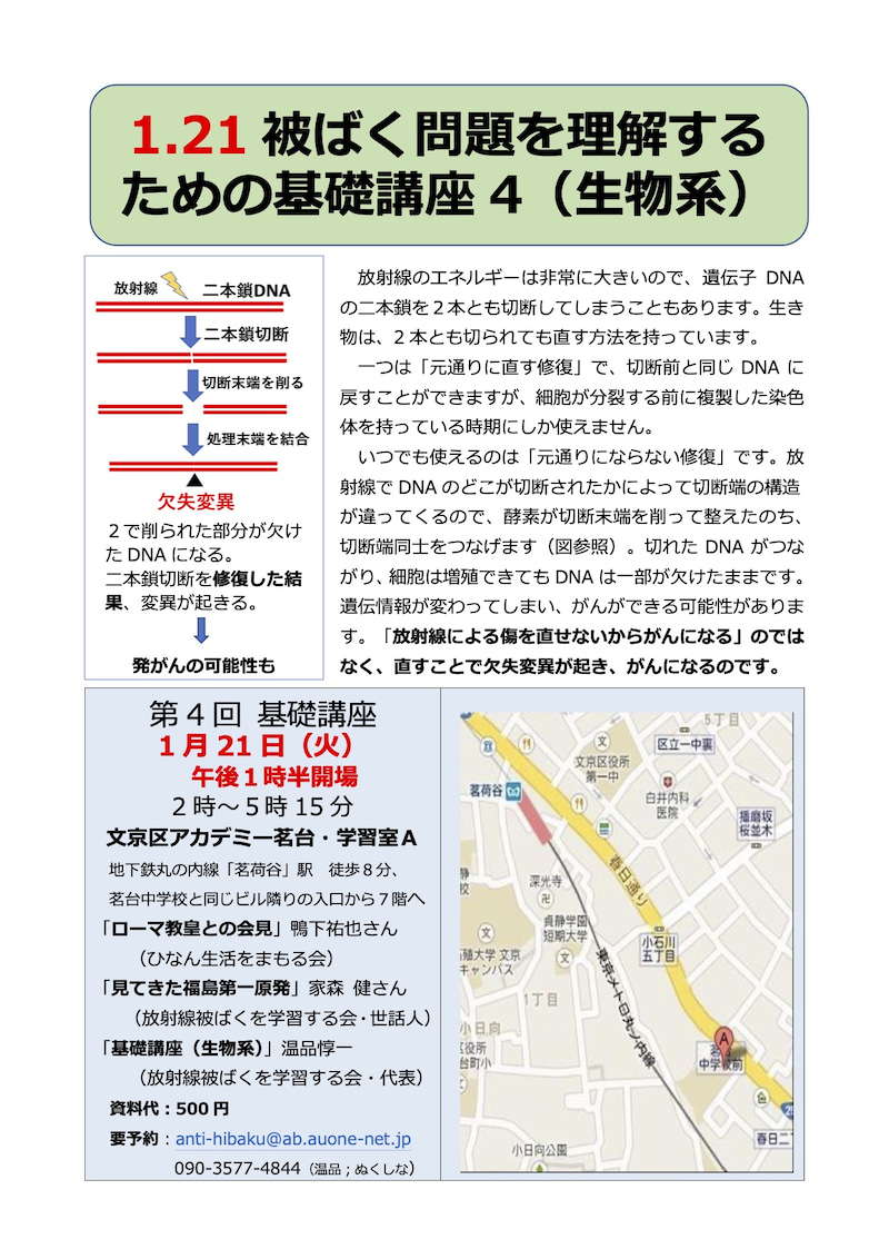 1.21(火)被ばく問題を理解するための基礎講座 第4回「生物系」 | 脱原発の日のブログ http://ow.ly/luiB30q76L7 pic.twitter.com/ST2BEnAlyl
