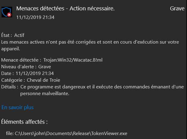 @tiraniddo is flagged as "Trojan:Win32/Wacatac.B!ml" by#WindowsDefender See also https://www.virustotal.com/gui/file/c67f80b49c8c3d20536f60dfc281f1a8df4080e63cac6320dd3cb63c622db566/behavior/VirusTotal%20Jujubox …pic.twitter.com/WKz38cAm37