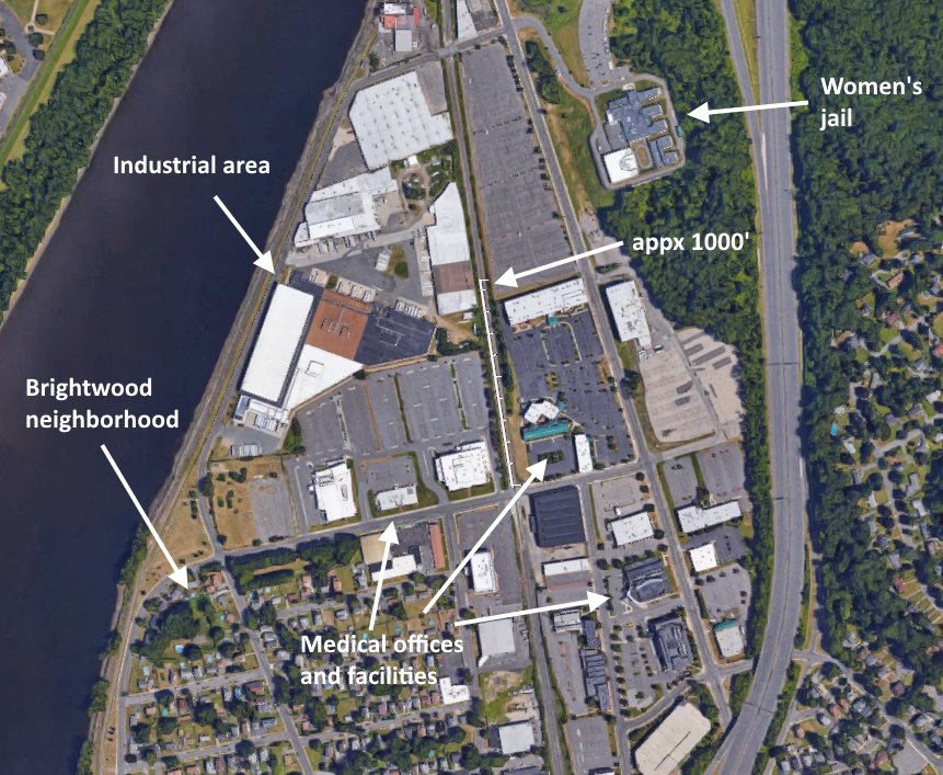 The site is about 1.25 miles away from the Union Station terminal in downtown Springfield. PVTA bus routes like the B4 (serving Brightwood) and perhaps the P20 (serving the west bank of the CT river, all the way to Holyoke) could terminate here instead of at Union.