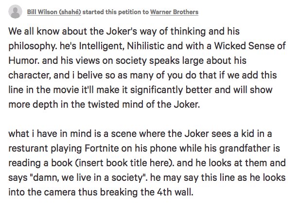 Damn, if this is said in the joker movie then it really shows how much we have progressed as a society. Gamers rise up