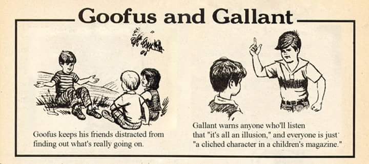 Goofus seems like a retard. Bad character. Dumb.