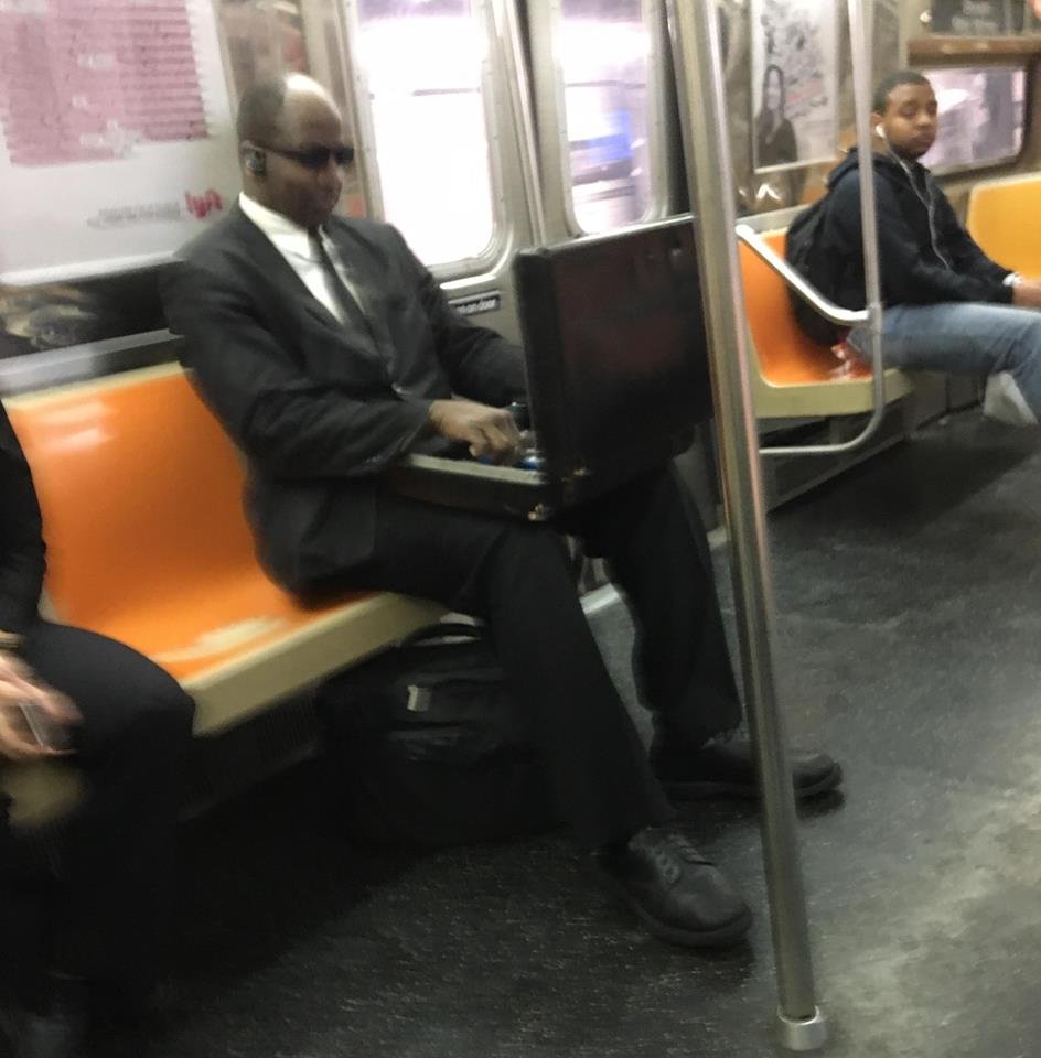 headphones...bag under feet...laptop/briefcase on lap...this is how to behave on transit ok