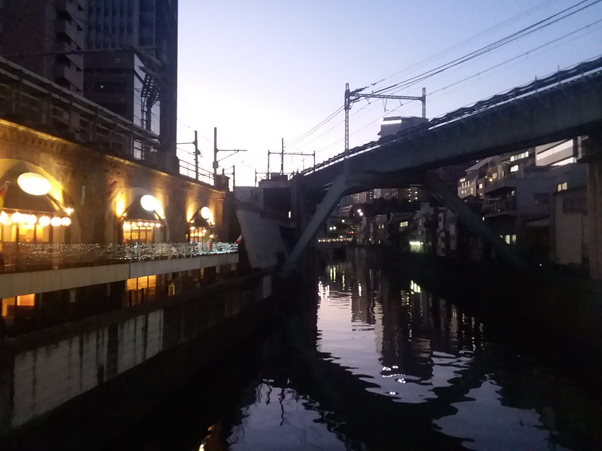 Spanish restaurant on the ground floor; in the second pic u can see a Marunouchi Line train's lights just above the waterpic.twitter.com/B2FtX4kDpF