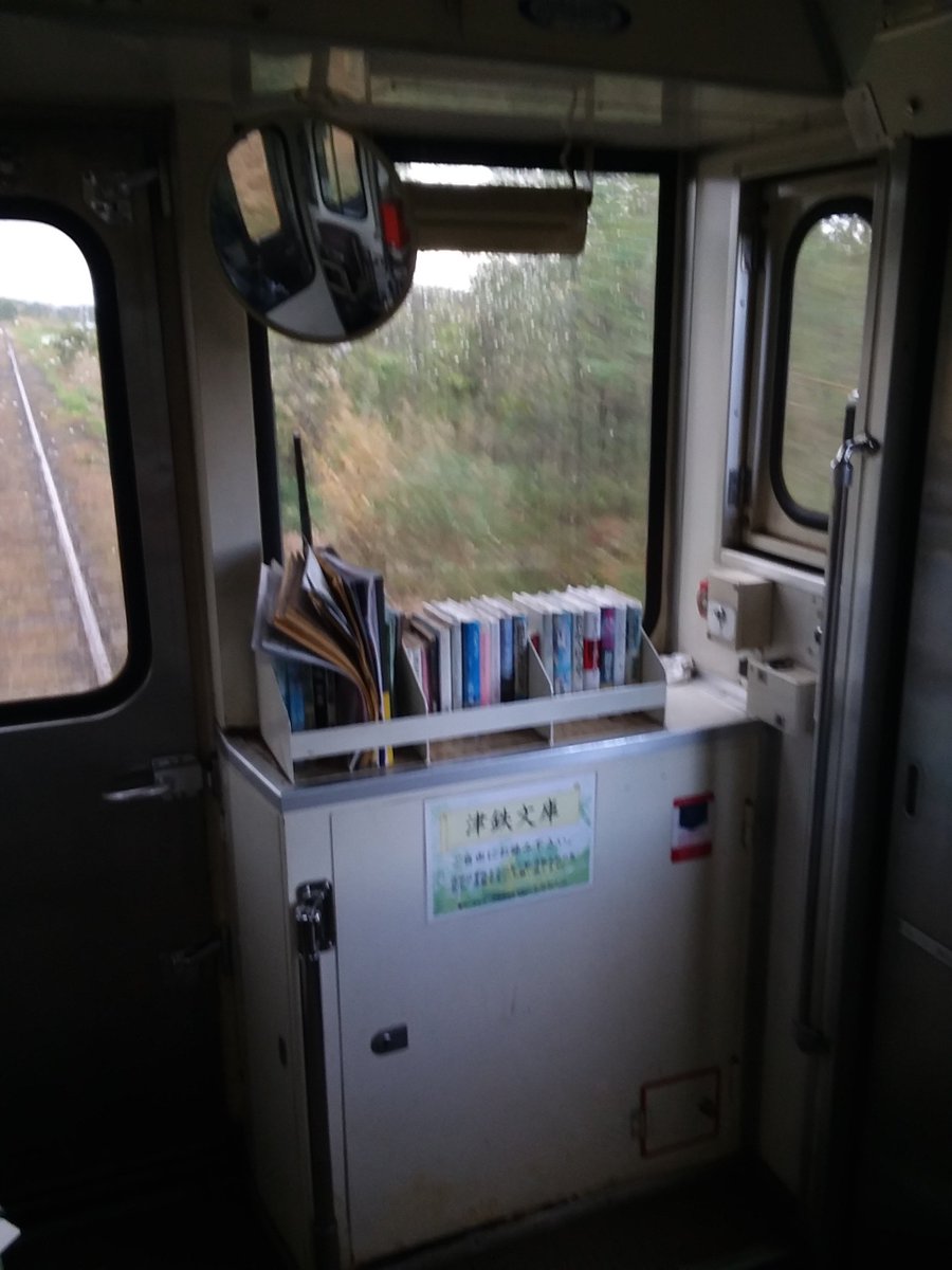 At Goshogawara I switched to the Tsugaru Railroad--interior is simple enough, but the little library is a GREAT touch imopic.twitter.com/EPQejS89yc