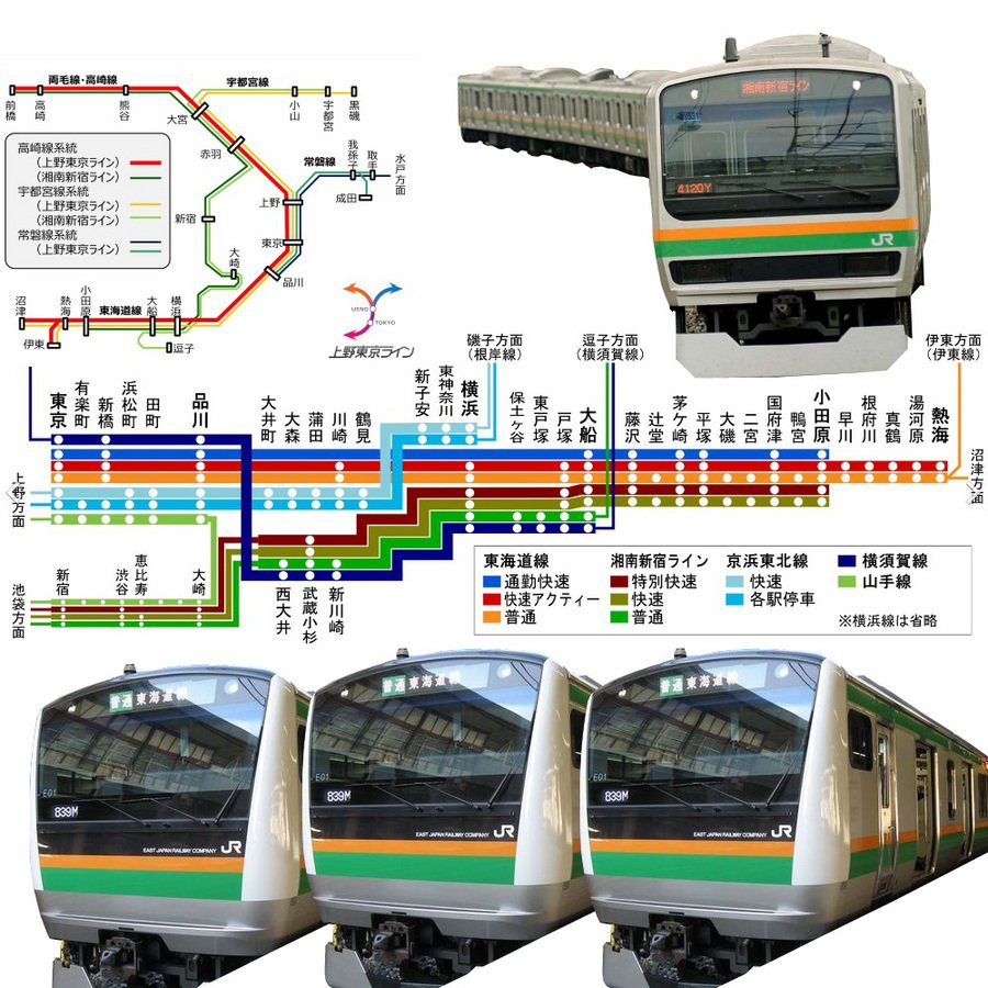 Finally, the big three! The Tokaido Line, Utsunomiya/Takasaki Line, and Shonan-Shinjuku Line all use the same rolling stock and colorspic.twitter.com/uwY1Soij69