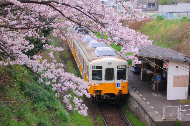 A Concord Lines local train stops for passengers on a spring day in Woburn (original: Kotoden)pic.twitter.com/2F16riJ7zz