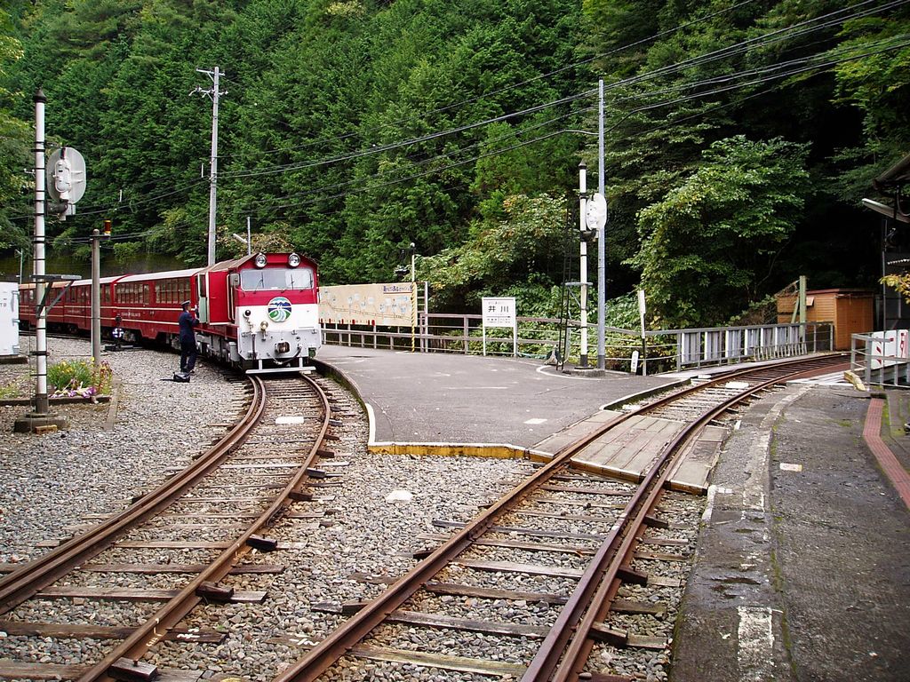 Next is Sakidaira, then Senzu, where the Oigawa Railway's two lines meet. We'll continue up the river valley on their Ikawa Linepic.twitter.com/22OdnfSHqz