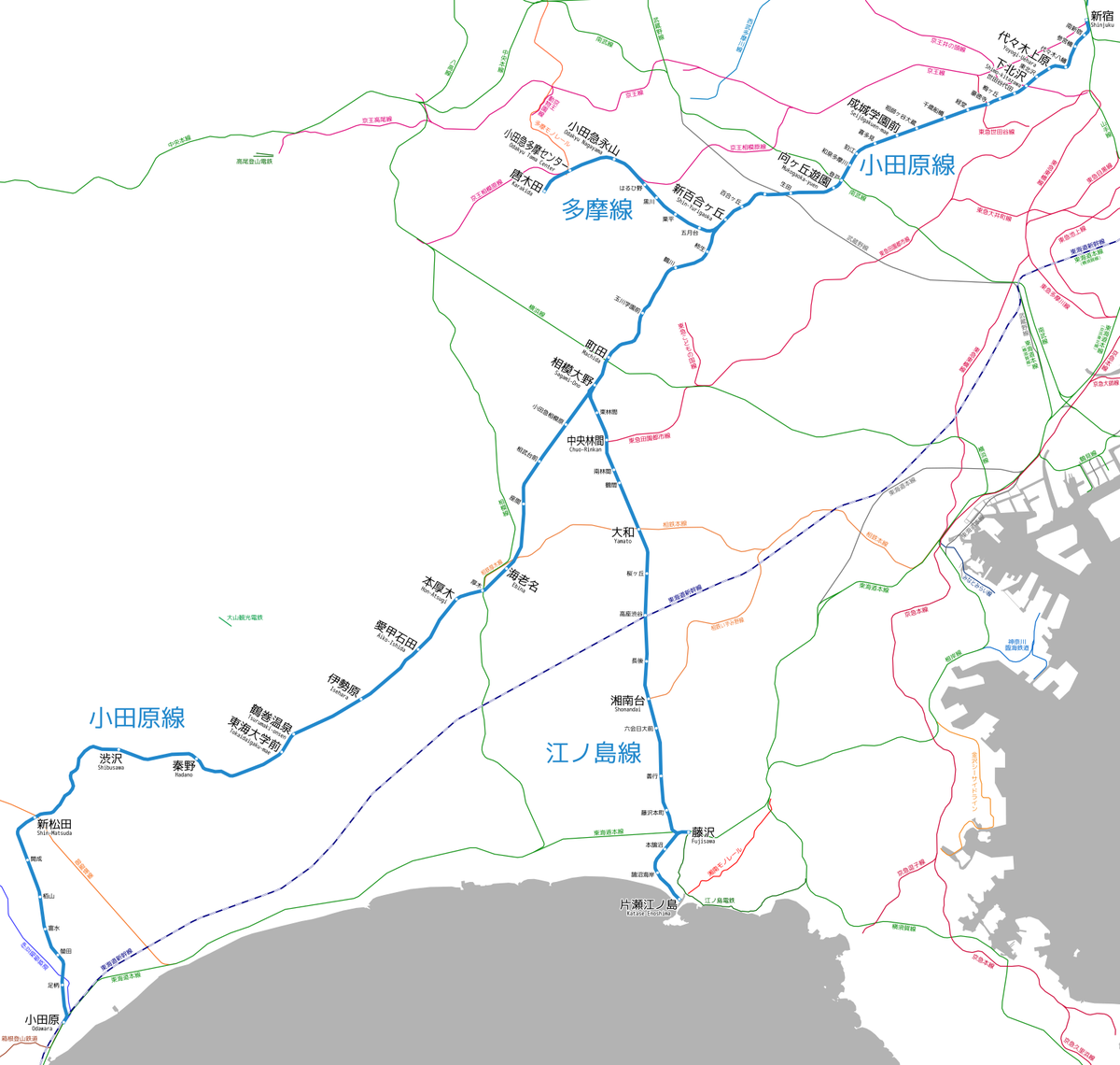 As we continue north and west, we come to my beloved Odakyu! As I've said before, their Romance Car is the finest train in the worldpic.twitter.com/tdAs0zauLA