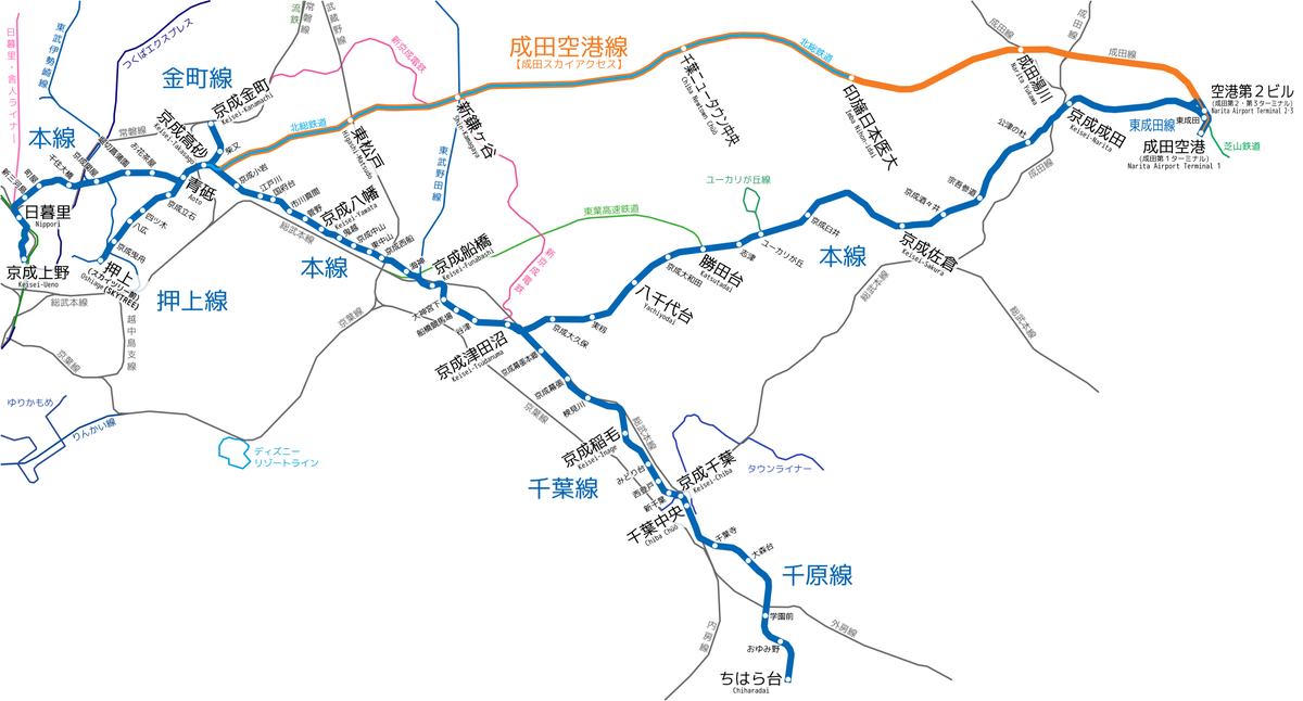 Further south and east, you'll find Keisei! This railway offers the fastest service from Tokyo to Narita Airport on its Skyliner express!pic.twitter.com/g7AgLFfV3O