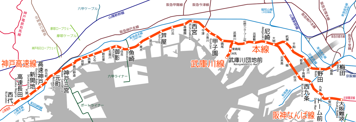 Just south is Hanshin! Hanshin competes on the busy Osaka-Kobe route, and recently extended one of its Osaka lines to Namba terminalpic.twitter.com/3gbqsMJnkG