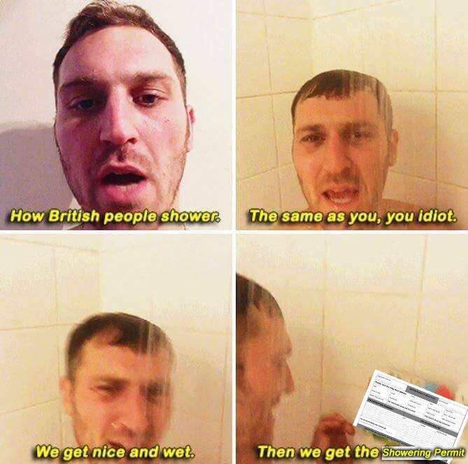 lest the man from the ministry of hygiene come around in the bathing-detector van.