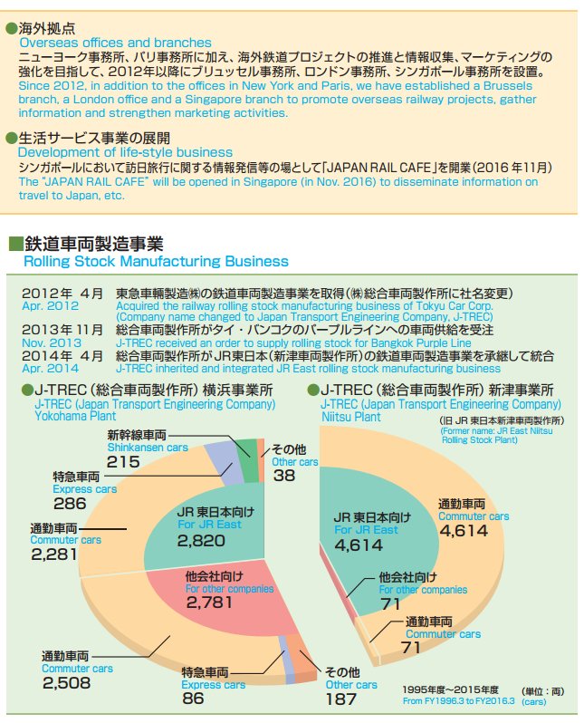 Overseas business (consulting, manufacturing) and breakdown of rolling stock built at JR East's two factories (commuter trains dominant)pic.twitter.com/m7uW4KUFGO