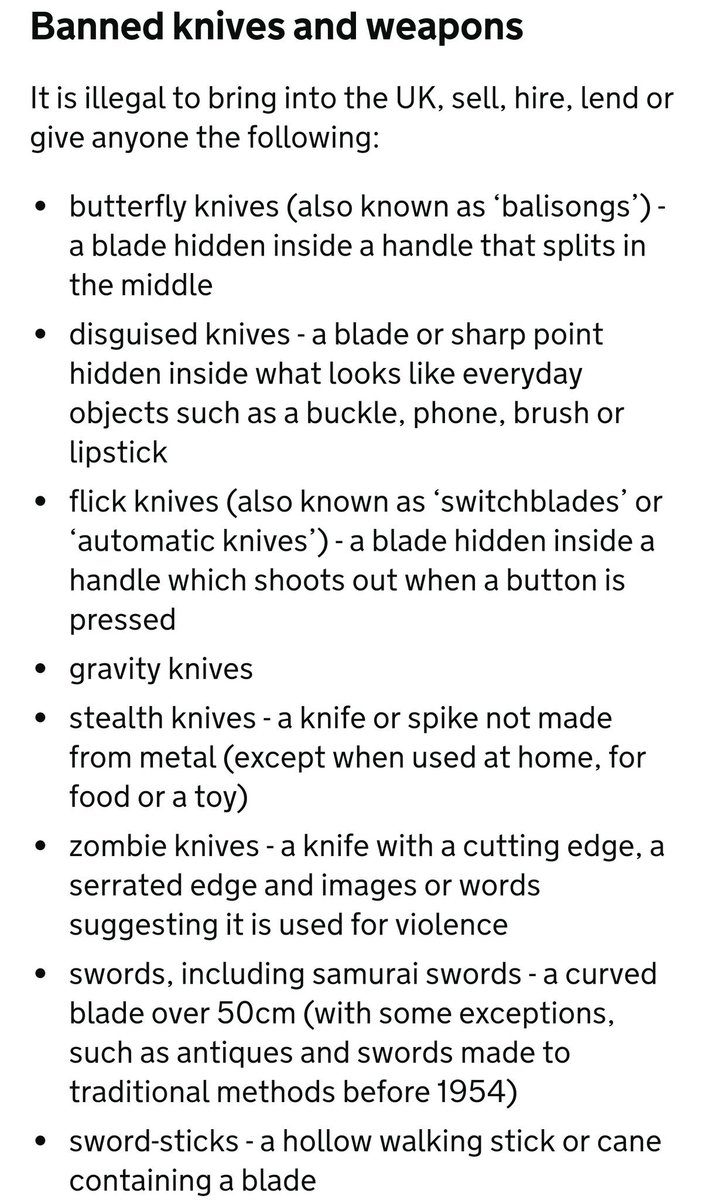 Since UK doesn't see self-defense as valid reason to own weapon, its knife laws are especially draconian (https://www.gov.uk/buying-carrying-knives …)pic.twitter.com/sBEXnHcyCG