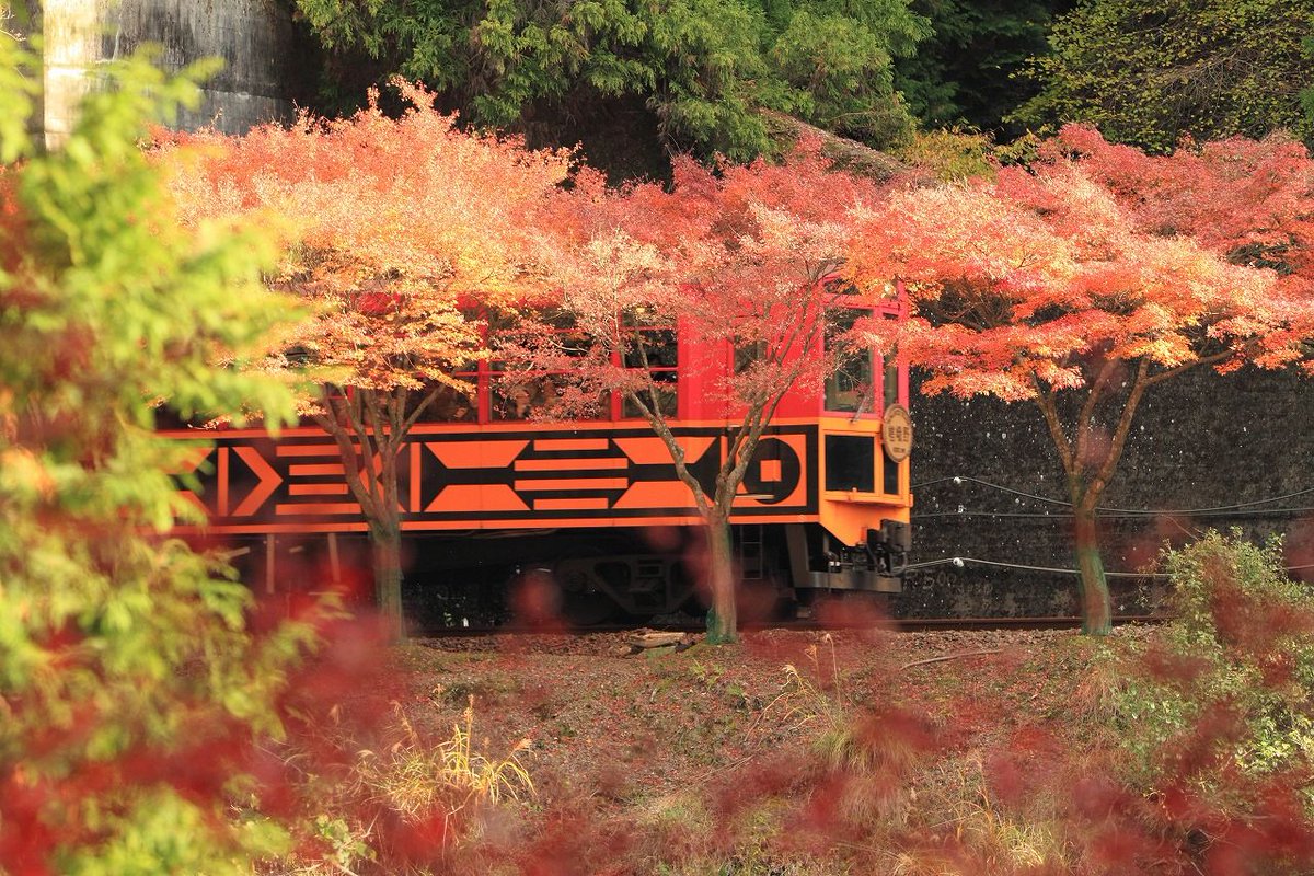This line winds through a steep gorge, using open-air carriages pulled by a locomotive (a type of train called "Torokko" in Japan)pic.twitter.com/Wa2sXrwMeD