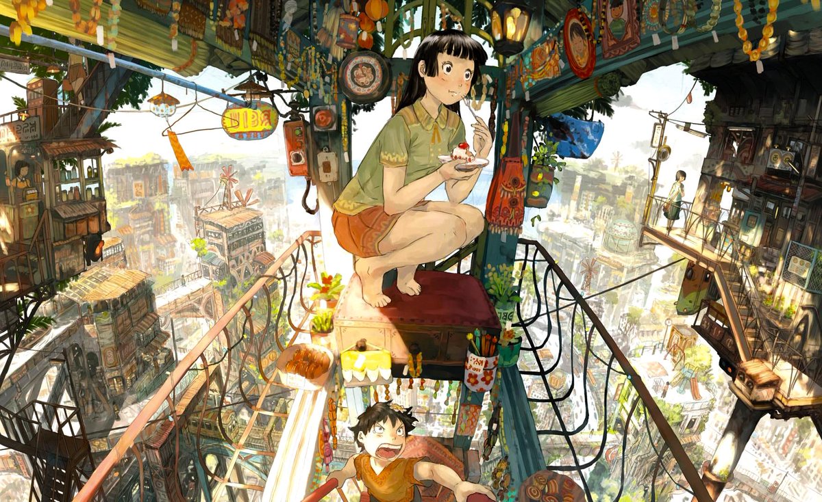 as architecturally implausible as they are, one thing I love about Imperial Boy's cityscapes is that they actually look like, you know, SOCIETY there are shops, there are workers, there are improvisations and decorations, there are cheap structures and ornate ones, etc etcpic.twitter.com/HXT1z4ZG9G
