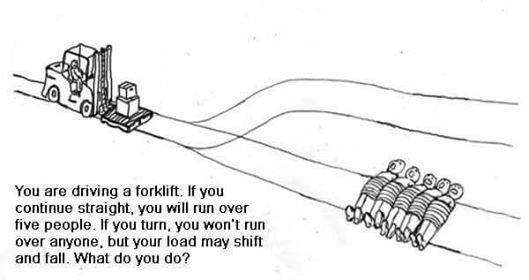 i think if you run over 5 people with that forklift you will cause enough turbulence for the cargo to also fall