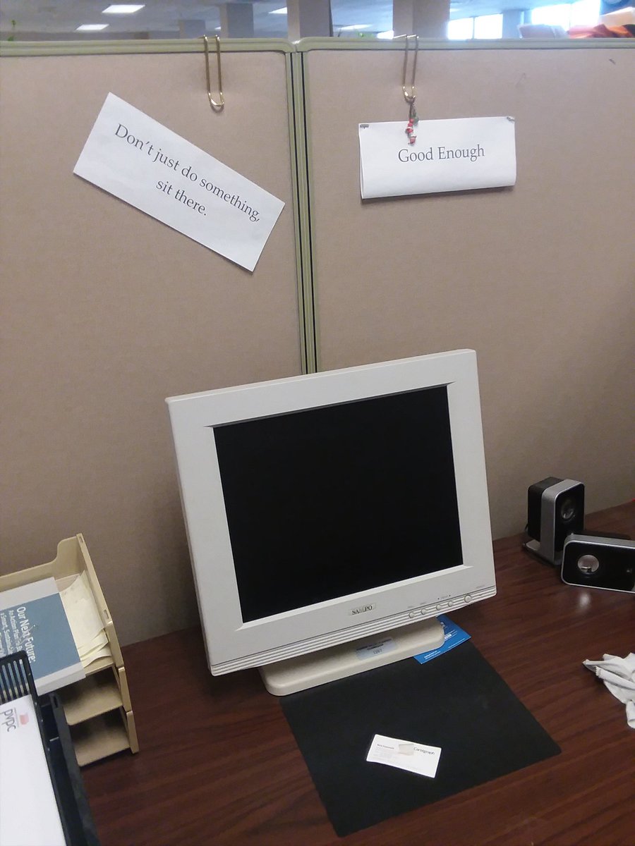 Before anyone gets too mad, this is from a vacant cubicle which we use to store surplus easels