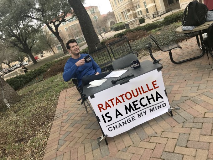 They’re saying that the movie Ratatouille should be classified as a mecha film haha but yes, too many people don’t know that the rat’s name is Remy